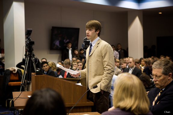 | Israel Jackson was one of dozens of students to speak at the Feb. 23 public hearing. |