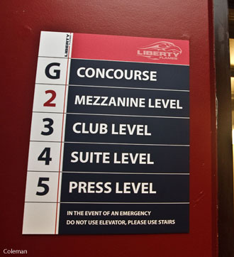 Already a waiting list has formed for Liberty’s new luxury suites on the fourth floor. The suites have a kitchen area, fridge, microwave, comfortable furniture, flat-screen TV, 12 private padded balcony seats and four indoor seats from which to watch the game. One double suite sits on the 50-yard line, offering the same amenities but for a larger crowd. Individualized parking for suite holders will be just to the left of the stadium’s entrance near the new Luurtsema Center, which houses the track and field, lacrosse and soccer programs.