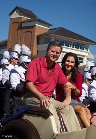 | Chancellor Jerry Falwell, Jr. and wife Becki ride in the parade. |