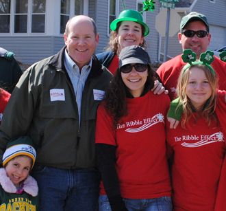 Krystal Tucker (center) poses with Republican congressional candidate Reid Ribble and some supporters after a St. Patrick’s Day parade in New London, Wis. |