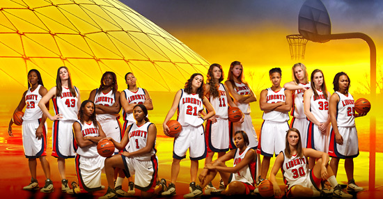 The photo, taken by Liberty University photographer Les Schofer, is the cover of the Women’s Basketball Guide for this season and shows the team in front of the Vines Center, also known as “the furnace.” It was the first-place photo in the Sports Features category. Schofer also took first place in the Personal Vision category with a photograph of pencils.