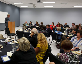 | David Bebbington from the University of Stirling delivered the keynote address at a banquet on Friday, kicking off The Conference of the Quatercentennial Anniversary of the King James Bible. |