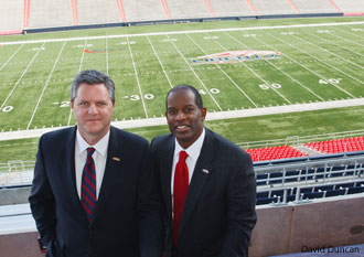 Chancellor Jerry Falwell, Jr. with Turner Gill, Liberty University’s new head football coach.
