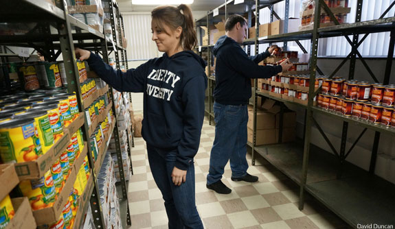 Carrie Doron, a junior at Liberty, was the student leader at the site, where the team unloaded a truck with more than 4,000 pounds of food. It was her first time helping at the mission through CCI.