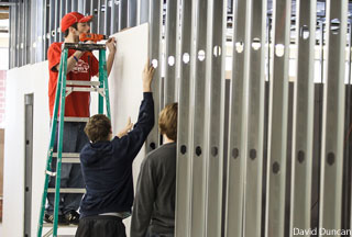 A few miles away, in the Fairview Heights area, students were putting up drywall as they helped to convert an old shopping center property into a youth media center. The project is part of the Y.E.S. (Young Entrepreneurial Spirits) Program, an outreach ministry for 11- to 19-year-olds. It was founded by Liberty alumnus Ron Banks. Children come to the center on Saturdays to learn about video recording and to participate in a Bible study.
