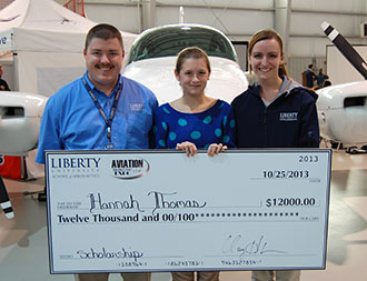 During the event, Liberty awarded a $12,000 Aviation Training Scholarship to high school senior Hannah Thomas, who won an essay-writing contest.