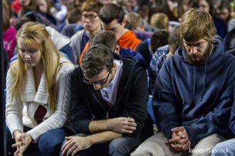 At the end of Convocation, Falwell announced that during the message he was able to speak briefly to the mother of Joshua Hathaway, the student who was killed. Falwell said she had asked him to convey her thanks to the students for their prayers, and for the support of her son’s prayer group, and asked for continued prayers as the family begins to process this tragedy.
