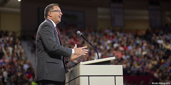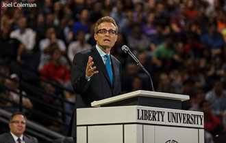 Key Christian leaders from across the country joined President Jerry Falwell onstage for Wednesday’s Convocation as Liberty University marked the final day of Global Focus Week. Throughout the week, the Center for Global Engagement has been raising awareness and mobilizing Liberty students, faculty, and staff to respond to the needs of international missions organizations.