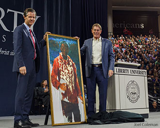 After Peterson’s and Green’s addresses, current Wycliffe president Bob Creson presented President Falwell with a painting titled “The Last Translator,” depicting the person who will translate the Bible into the last remaining language. For now, the translator is faceless and nameless, but the painting will be finished when the last Bible translation is finished — probably within the next 10-12 years.