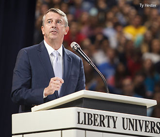 U.S. Senate candidate from Virginia Ed Gillespie, whom President Jerry Falwell praised as a defender of personal religious liberty and limited government, also addressed the students.