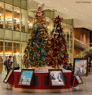 The campus is ready for the season, as guests can now view Christmas lights on trees lining University Boulevard and on the 40-foot Christmas tree in front of DeMoss Hall as well as listen to Christmas music playing on speakers throughout main campus. They can also visit the Jerry Falwell Library, which features three Christmas trees in the main atrium that are decorated with characters from Charles Dickens “A Christmas Carol,” and a beautifully decorated Hancock Welcome Center.