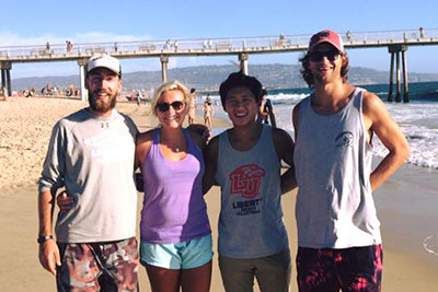 After arriving in Southern California on Wednesday morning, Lady Flames beach volleyball players Karyl Wiese, a graduate, and Morgan Horne, rising senior, had the opportunity to train with former United States Olympic beach volleyball player Holly McPeak on Thursday and Friday, leading up to Saturday’s tournament play. Meanwhile, Liberty rising senior Sam Eisbrenner and graduate David Hong participated in a workout session with 2000 Olympic gold medalist Eric Fonoimoana.
