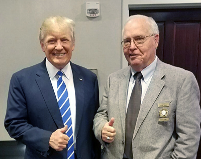 President Donald Trump greets Sheriff Mike Brown, 2016 National Sheriffs’ Association Sheriff of the Year.Sheriff Brown and his wife describe themselves as lifelong friends of the university.
