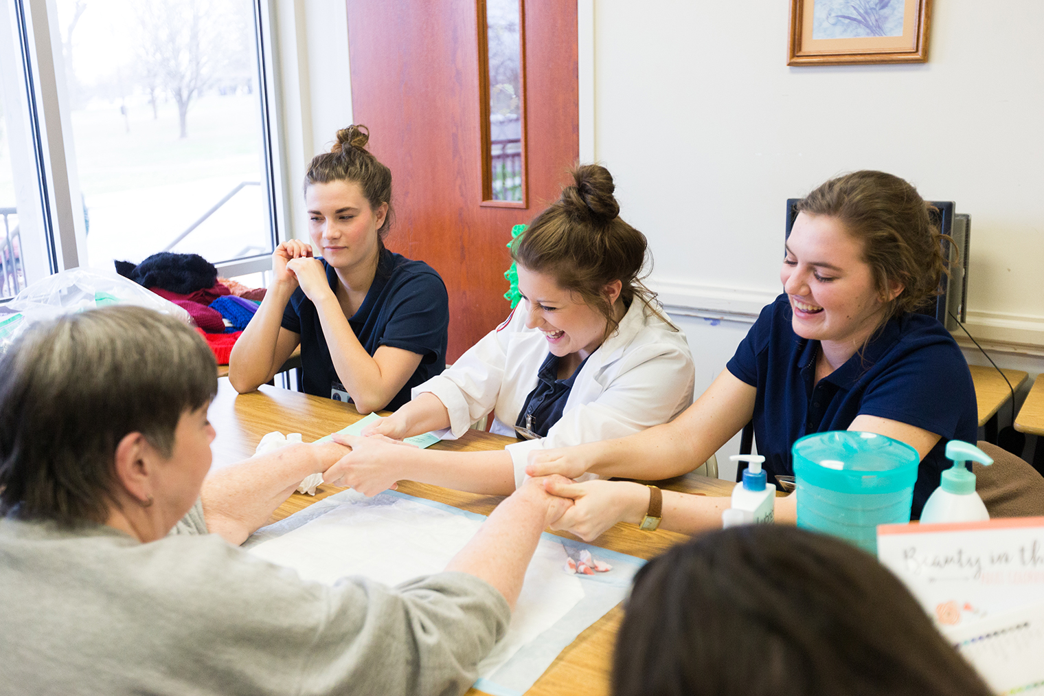 Armed with buckets of warm, soapy water and jars of nail polish, dozens of Liberty University School of Nursing students served the homeless and impoverished members of the Lynchburg community on Monday during the most recent Hands and Feet Clinic.