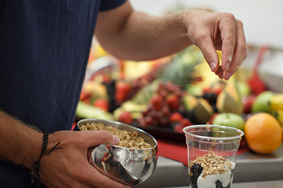 Liberty is already meeting a food and nutrition guideline by using signage in its dining venues and retail food outlets to let students know about healthier food and beverage options. Having a registered dietitian nutritionist (RDN) available to give personal nutrition assessments and counseling to all students meets another PHA guideline. Liberty has also cut back food waste by getting rid of trays in all of its dining venues (exceeding the PHA guideline that expects universities to be “tray-less” in at least 75 percent of dining venues). For years, Liberty Dining Services has complied with the guideline of offering a minimum of five types of fruit, five types of vegetables, and two 100-percent whole grain products at both lunch and dinner. (Read more about how Liberty Dining Services stands out for its innovative, healthy, and allergy-conscious offerings for students.)