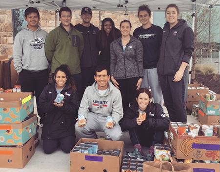 While most area youth were gathering candy for themselves on Oct. 31, Liberty student-athletes were going door to door for the annual “Trick or Treat So Others Can Eat” canned-food drive. The student-athletes collected more than 5,136 canned goods, with the women’s lacrosse team leading the way with a total of 1,573.