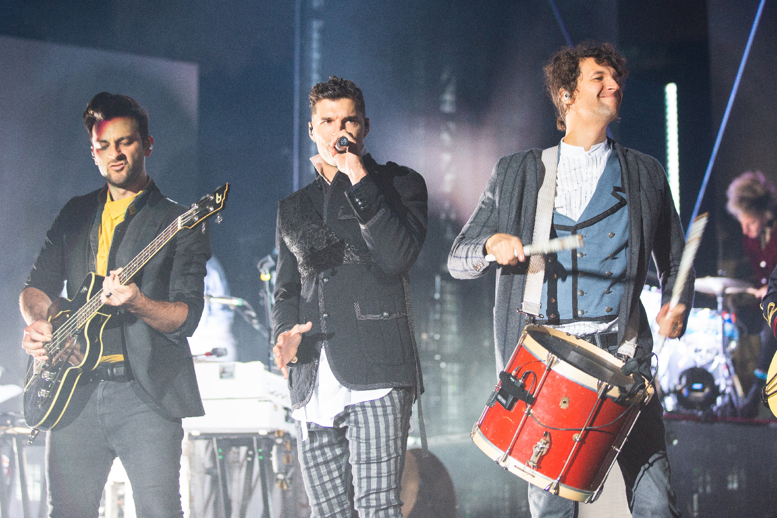 For King & Country graced the stage during Wednesday’s Convocation at Liberty University’s Vines Center, treating students to a mini-concert complete with high-energy percussion section, laser light show, confetti cannons, and an inspiring message of hope.