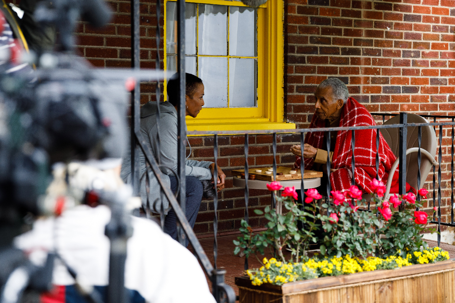 Early on Tuesday morning, the crew was busy shooting Eleanor (Abercrombie), a prominent judge who returns to the low-income neighborhood where she grew up, as she urged her elderly father to move into her home in a gated community. But her father doesn’t want to leave Eleanor’s childhood home.