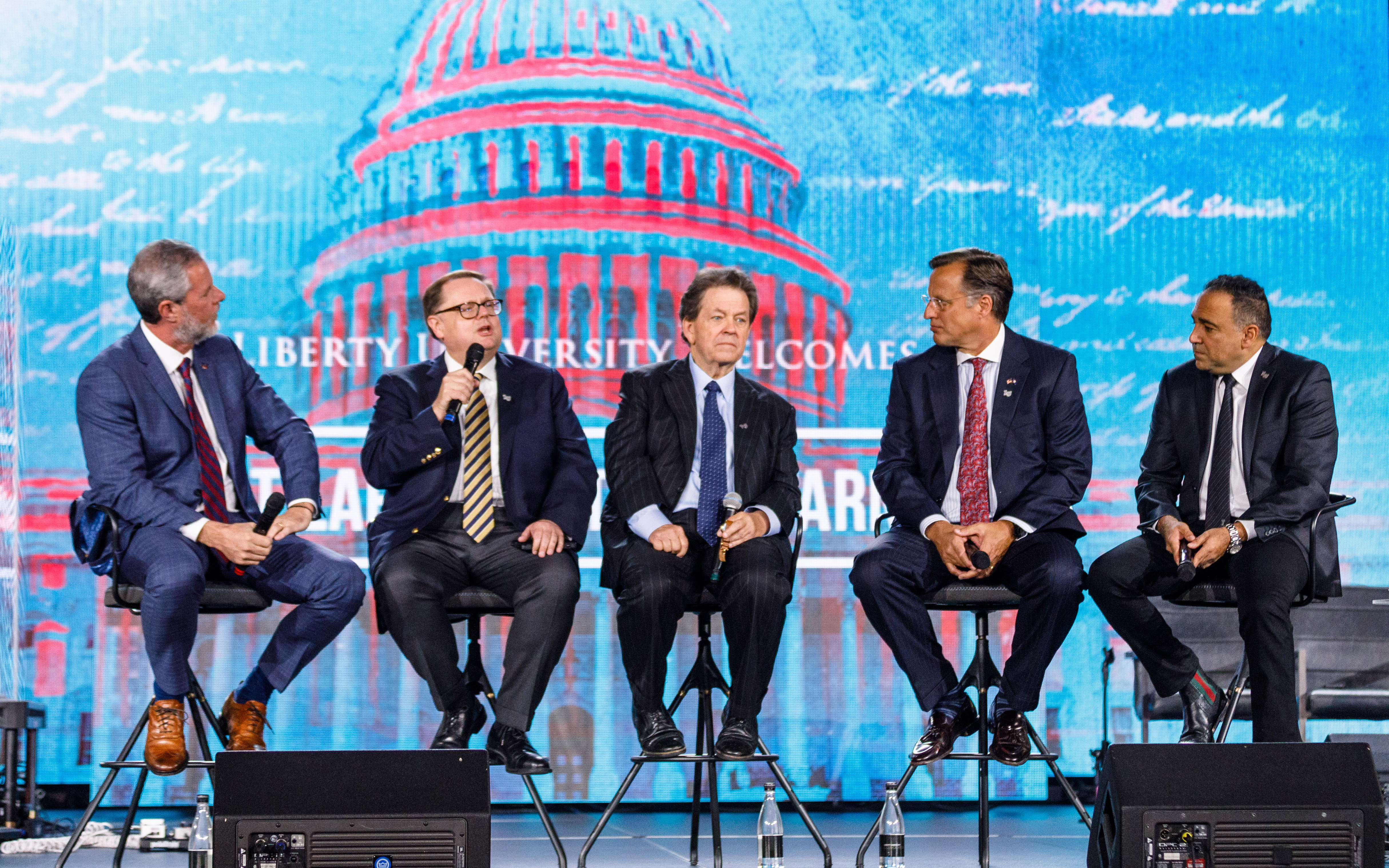 After the ceremony, Laffer joined Falwell, Brat, and Fox News radio host Todd Starnes at Convocation, where they participated in a panel on business, religious freedom, and faith.