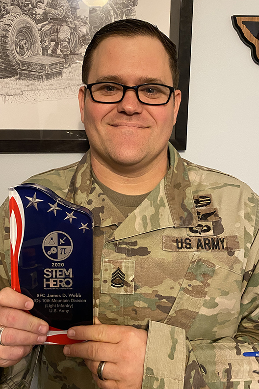 Webb serves as the Division Equal Opportunity Advisor for the 10th Mountain Division Light Infantry Division of the U.S. Army. On the side, Webb partners with Boy Scouts of America to engage youth in the STEM fields.