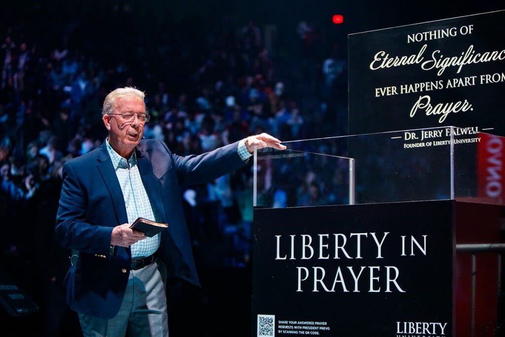 The power of prayer and God’s call for His believers to join together in asking for His provision were the focus of Friday’s Convocation in the Vines Center, as President Jerry Prevo introduced students to the university’s new community prayer initiative, “Liberty in Prayer.”