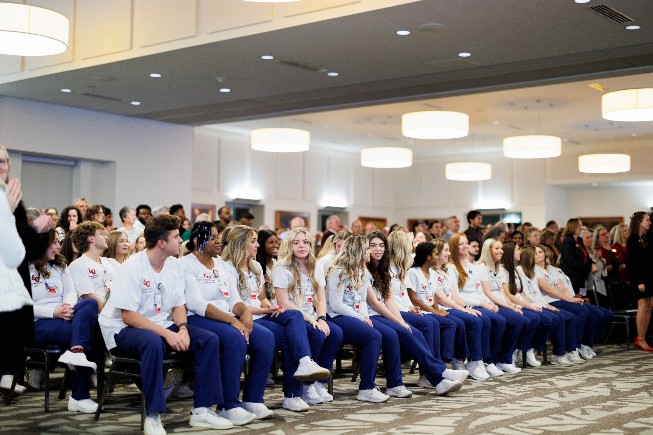 In the closing moments of the ceremony, all 68 of the graduates recited the Nightingale Pledge, an oath often made during pinning ceremonies through which they vow to practice nursing faithfully, honestly, and with a commitment to the welfare of others, wherever they may be.