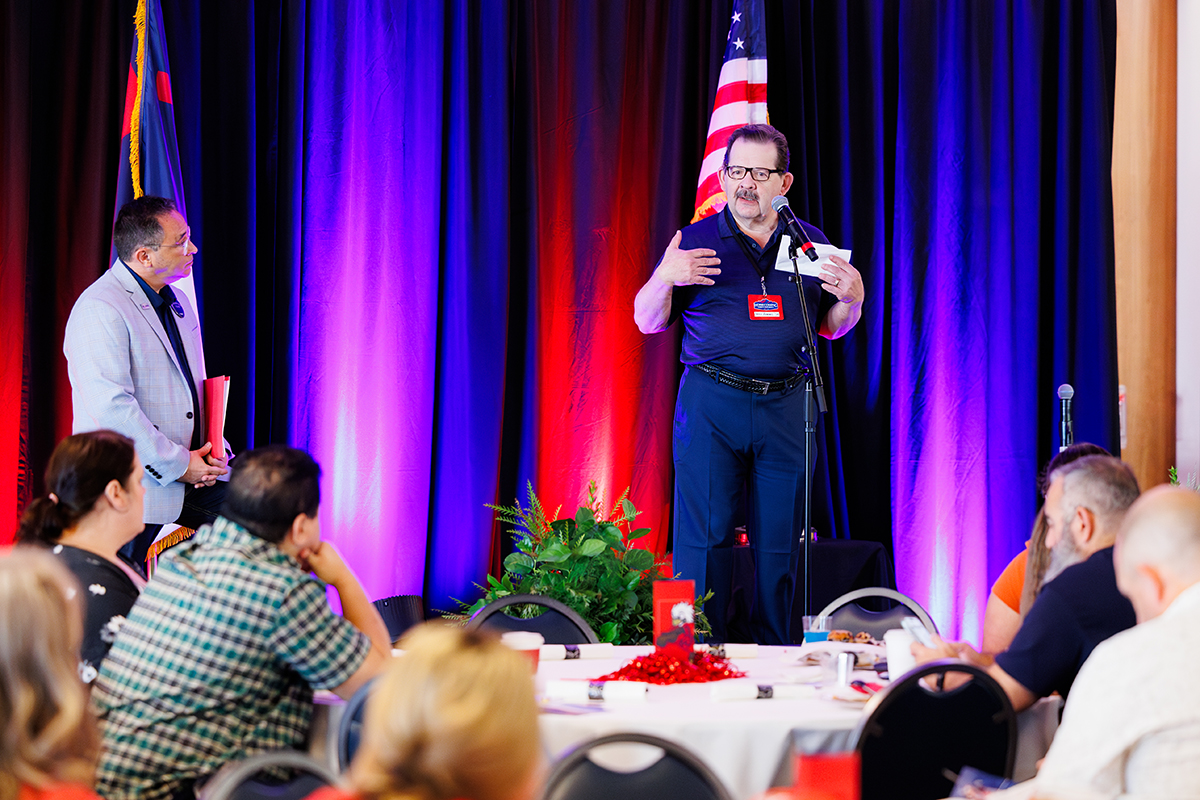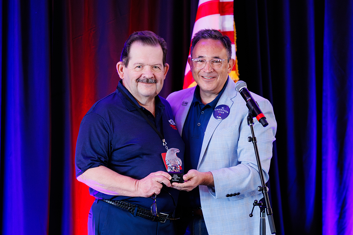 After an introduction from Tilley, Roberts was welcomed onstage to accept the award and give a brief speech. Roberts reflected on his many levels of involvement in Liberty’s history, which began with him arriving to campus in 1973 and continues to this day through the Facebook group and alumni chapter. He spoke to the topic of legacy — Liberty founder Dr. Jerry Falwell’s legacy, the university’s legacy, his own legacy, and the legacy of every other Champion for Christ who has attended Liberty University.