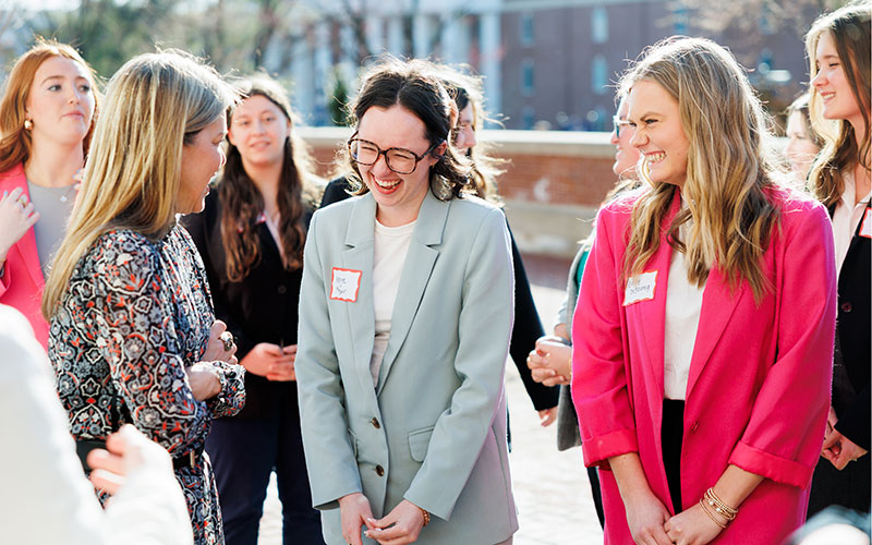 The event, “A Sisterhood Gathering focused on Well-Being,” was held in the Towns Auditorium at the School of Business and open to female students and staff and invited members from the community. Youngkin facilitated the session with Virginia Secretary of Health and Human Resources Janet V. Kelly and Virginia Secretary of Education Aimee Guidera. Their visit was part of the first lady’s Strengthen the Spirit of Virginia’s Women+girls (W+g) initiative.
