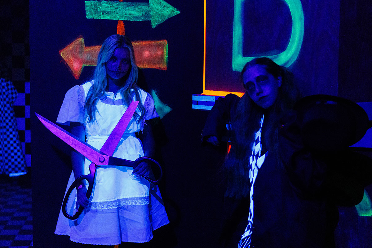 Guests walk through a trail, a wooded area, and 18 rooms in the House of Death that bring alive various scenes of death and human fears. This year, there are four new rooms, including an expanded fan-favorite checkerboard room (commonly referred to as “the strobe room”) and a room that focuses on childlike experiences. There is also a large military-style tent in the wooded area with a spooky surprise inside.