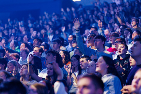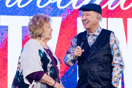 After the Liberty Worship Collective opened Convocation with “Because He Lives,” which the Gaithers released in 1971, Liberty President Dondi E. Costin invited the couple on stage to honor their extensive contributions to sharing Christ’s love through music.
