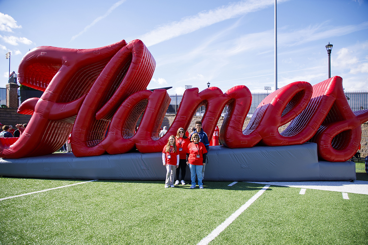 Before the gates opened, families participated in the Alumni Tailgate on the Outdoor Football Practice Field and the Flames Fan Fest at the Indoor Football Practice Field.
