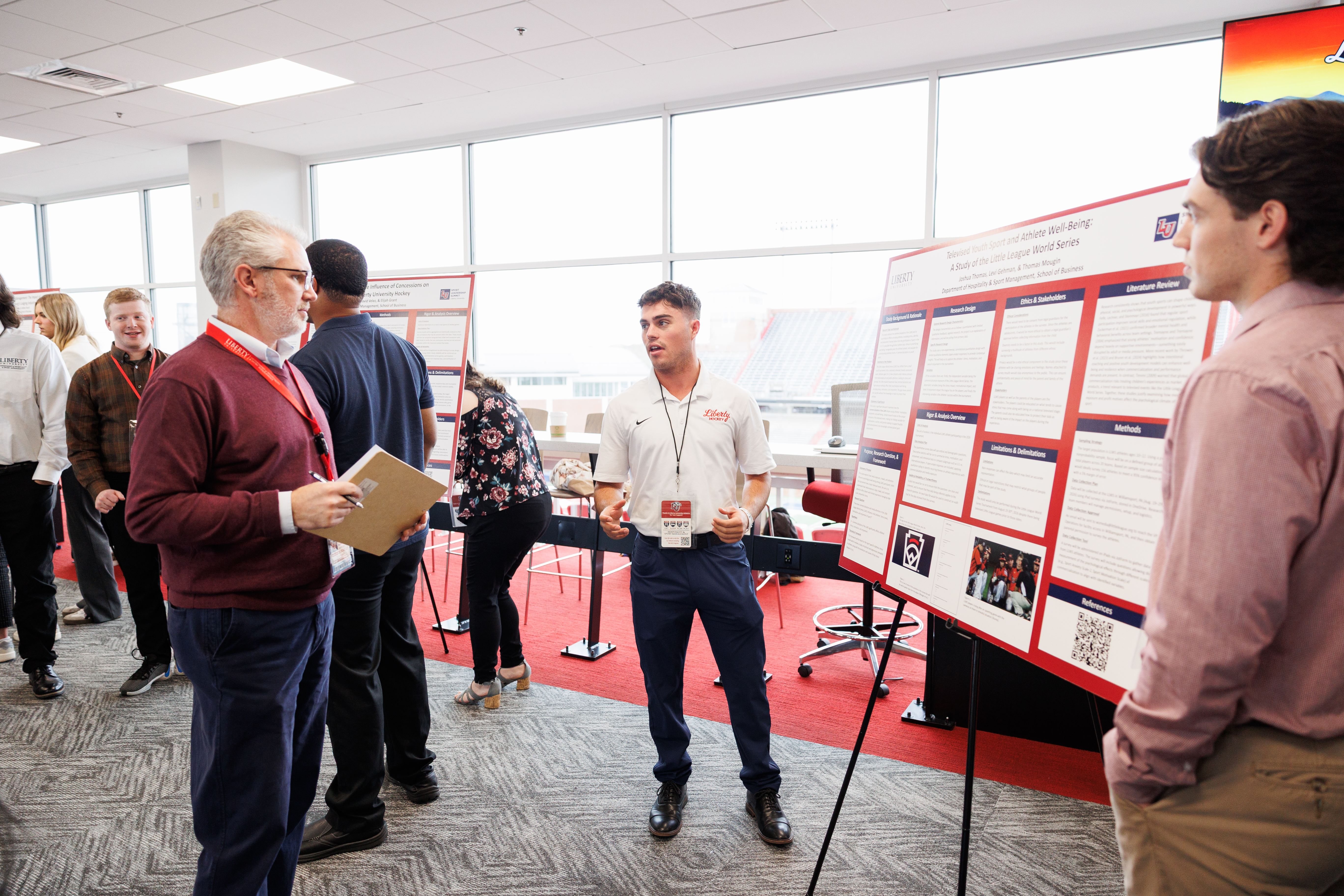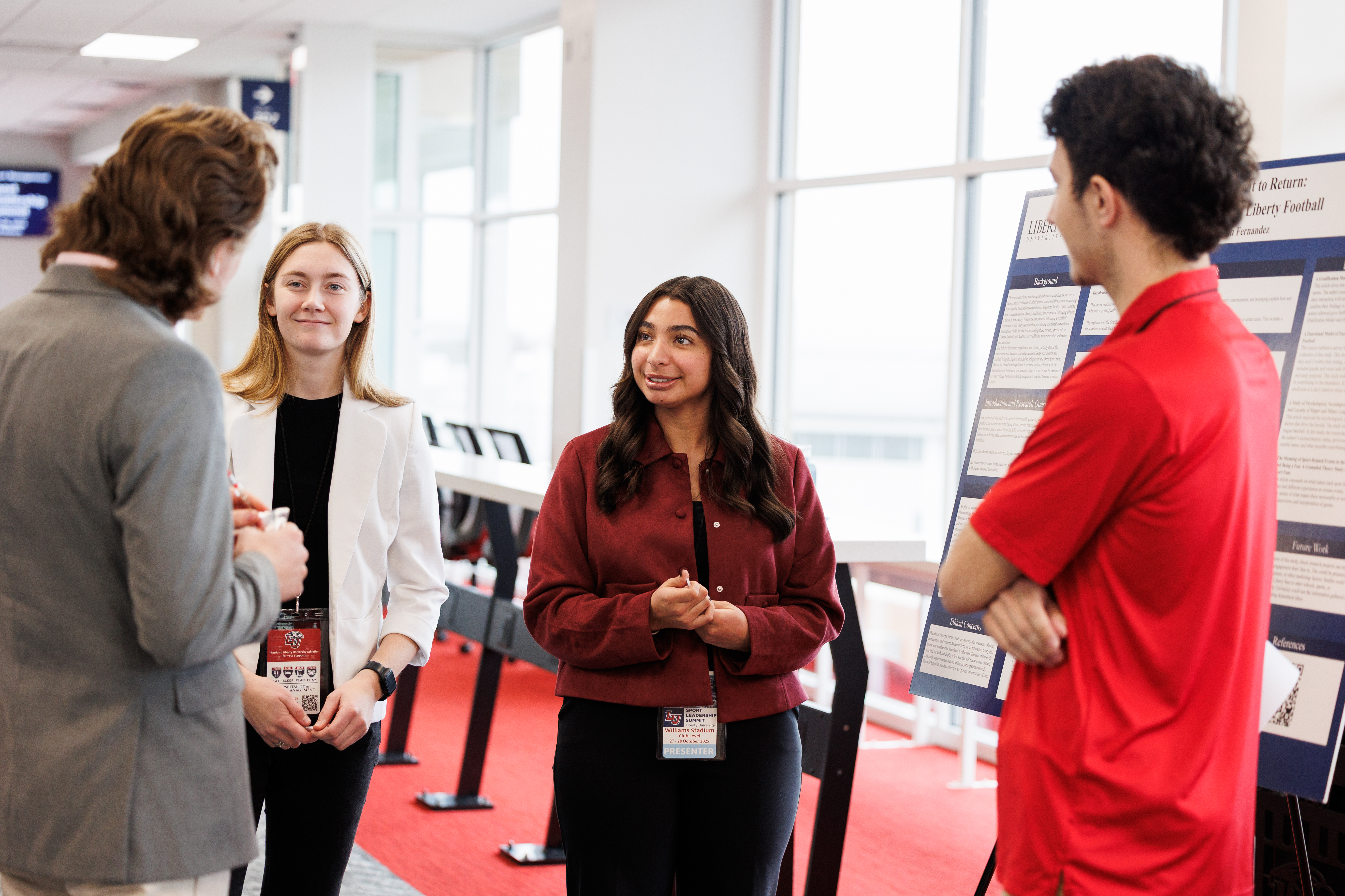 Speakers and panelists included Jason Penry, founder and principal of Penry Advisors; Daniel Rodriguez, senior manager of Workforce Operations for the LA28 Olympic and Paralympic Games; Morgan Skillman, volunteer manager with FIFA World Cup 2026; Aaron Freeman, senior director of Membership Services with Monumental Sports & Entertainment; Jaime Logan, inside sales manager for the Carolina Panthers; Landon Owen, vice president of Consumer Sales for Bristol Motor Speedway and New Hampshire Motor Speedway; Leo Cardenas, vice president of Sales and Service at On Location; and Liberty Men’s Soccer Head Coach Kelly Findley.