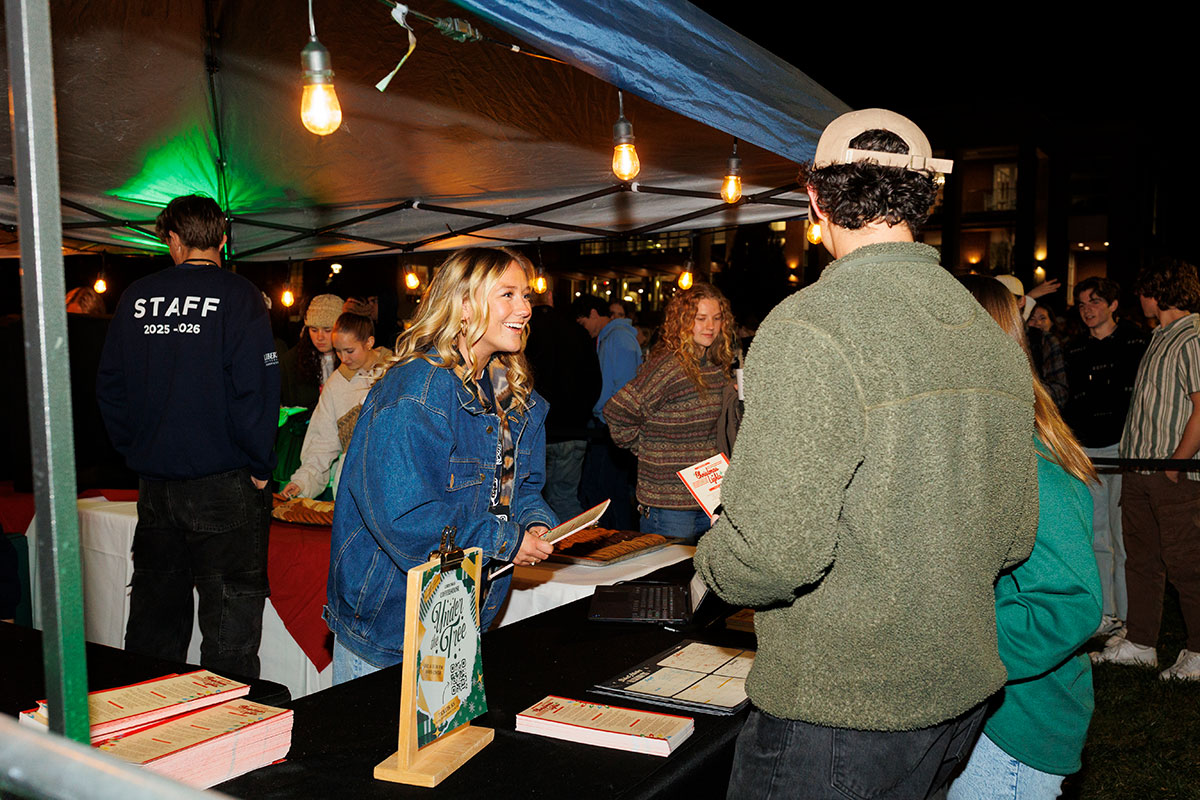 The event featured live Christmas music, free hot chocolate and cookies, a tree lighting ceremony, and a live nativity with a camel and donkeys that students could pet, feed, and take pictures with.
