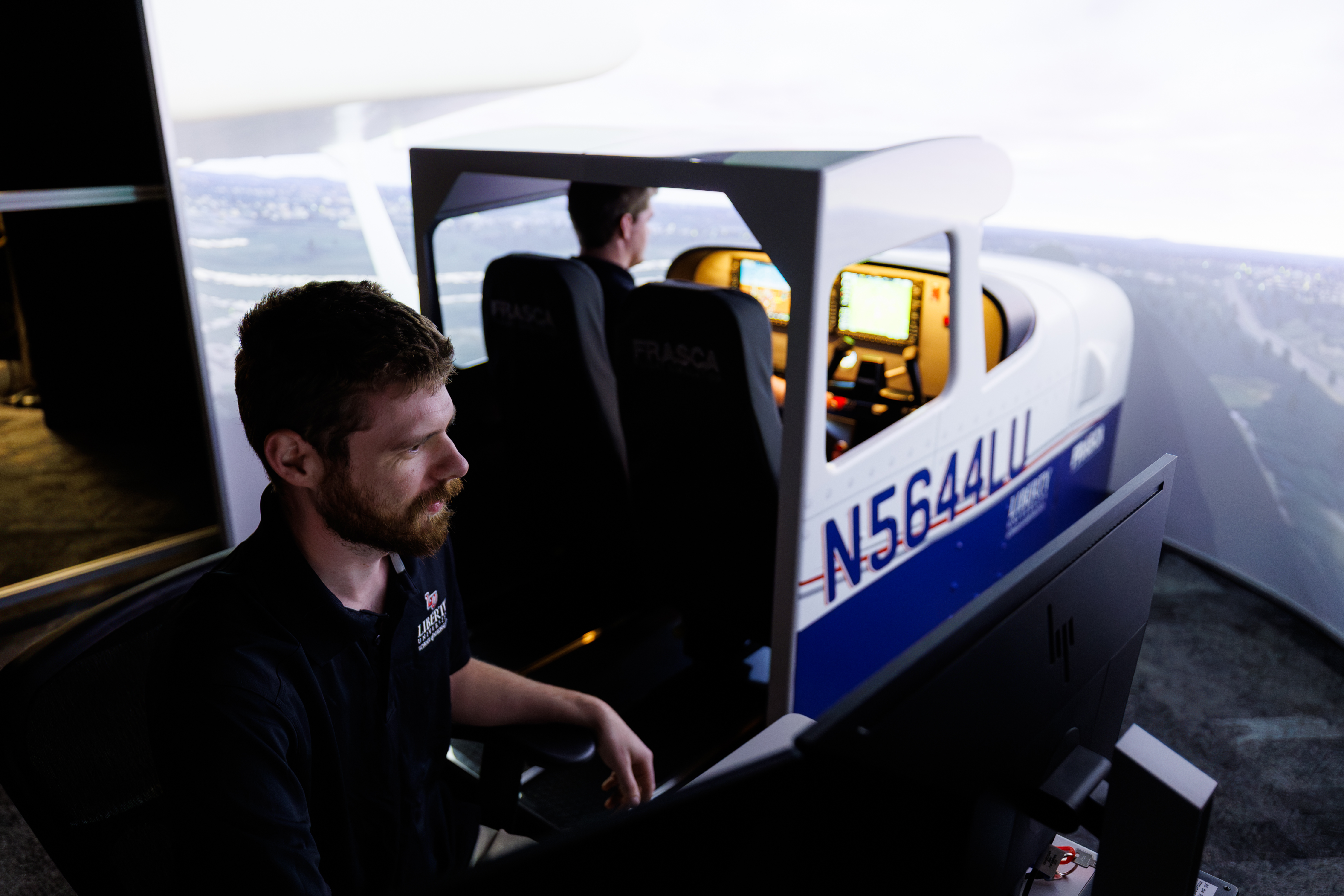 “It’s a world of difference,” Simulator Technician Tyler Faulkner said. “The terrain is visually accurate, which is beneficial to training. In the old sims, the airports are flat. In Lynchburg, there’s some hills and the tower is actually raised up on a hill. The visual picture is much more accurate to what you will see at the airport.”He said the avionics and instrumentation in the simulator are identical to that found in the new Cessna Skyhawks in Liberty’s fleet.