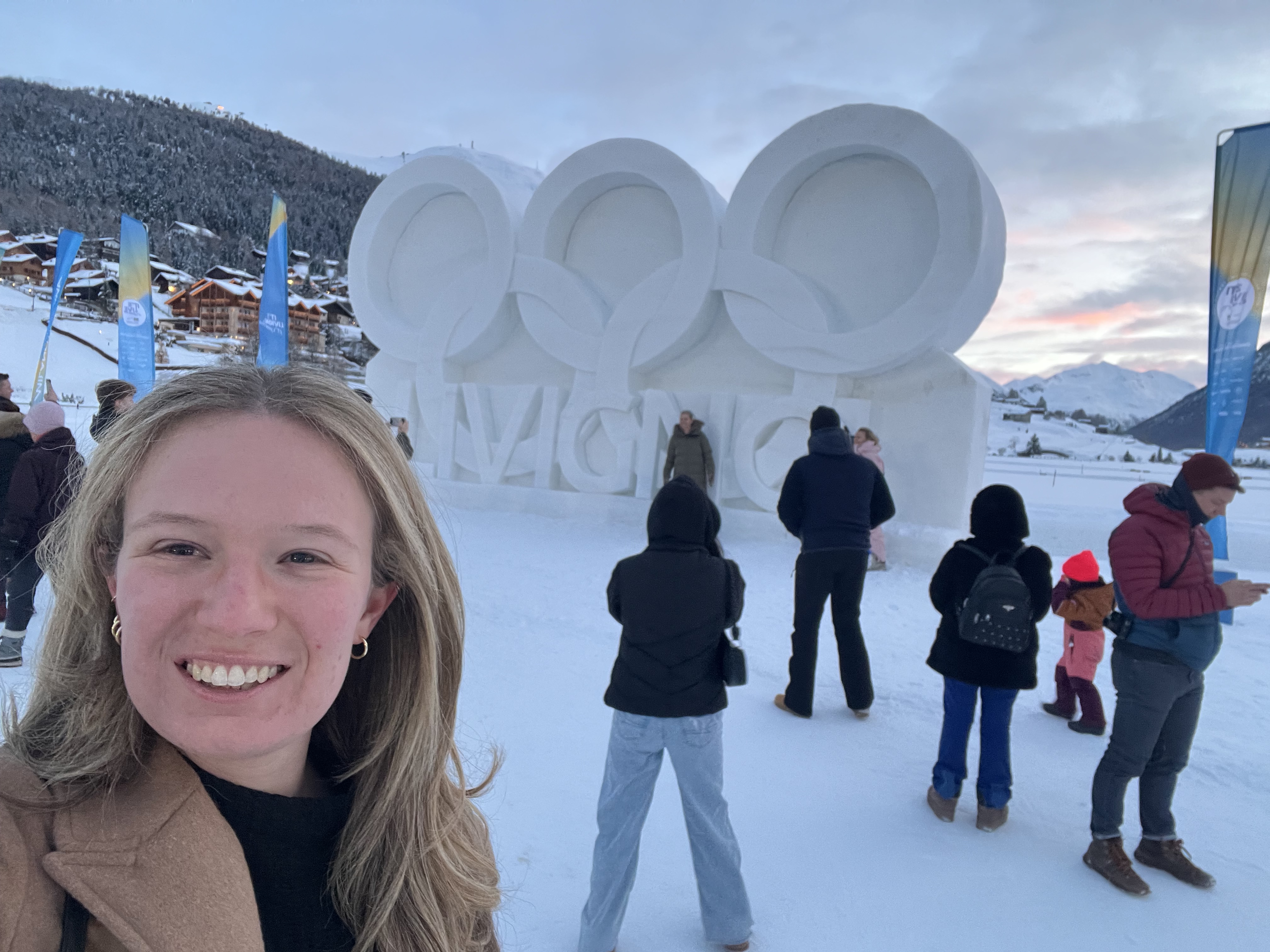 In Livigno, Italy, a roughly four-hour drive from Milan and the site of multiple sporting events, Megan Day (’21) is working as a technical director for the Olympic Broadcasting Service, which supplies video feeds of the events to every country. She is assigned to the ski and snowboard Big Air, Parallel Giant Slalom, and Cross-Country skiing events. As a technical director, she is responsible for orchestrating video, audio, and graphics, and switching between sources in real-time.