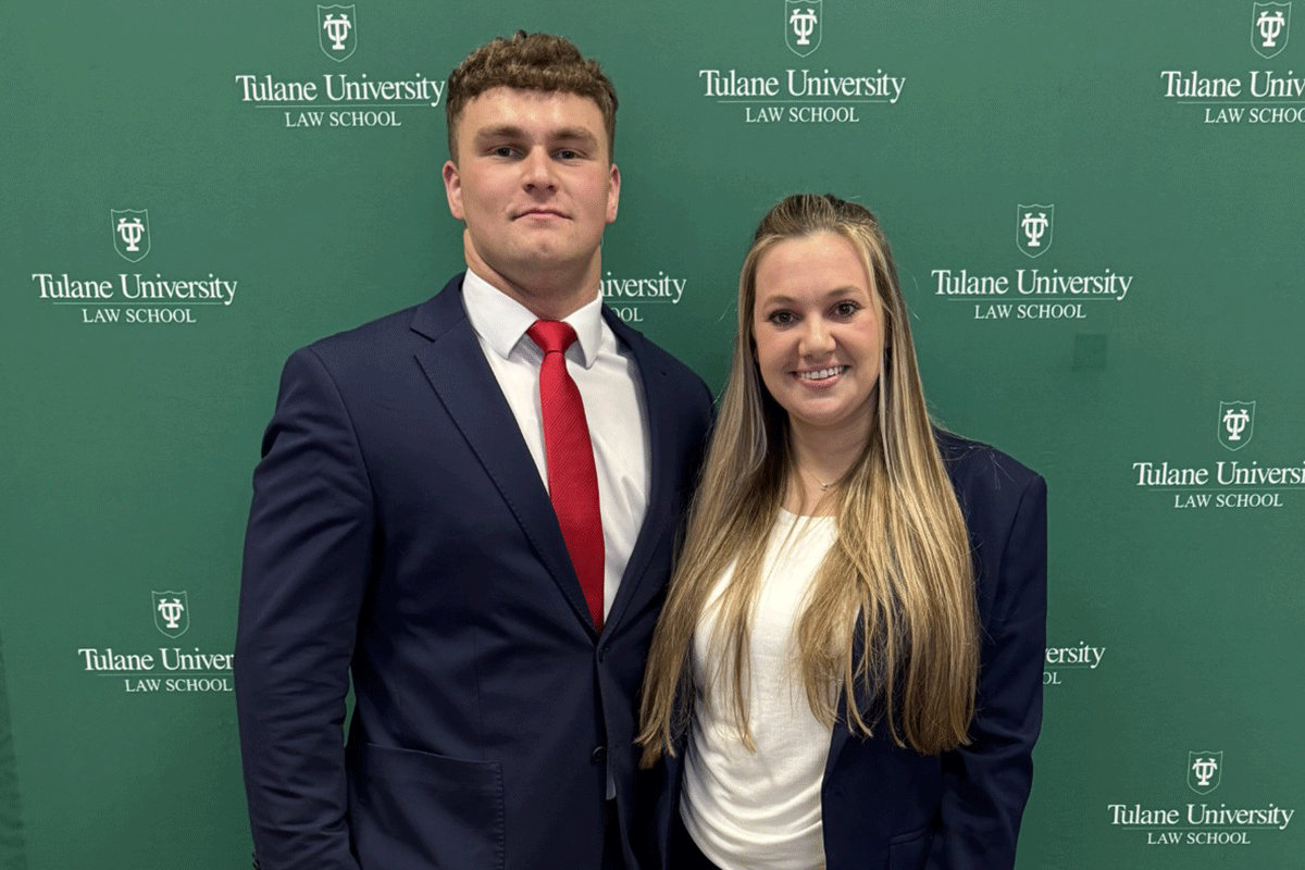 As the NFL season drew to a close over the weekend, students from Liberty University School of Law were celebrating their own championship trophy as winners of the annual Tulane Professional Football Negotiation Competition, held Jan. 31-Feb. 1 at Tulane University Law School in New Orleans. Competing before NFL executives and agents, two Liberty Law teams showcased the unique skills needed to negotiate an NFL contract for a free agent or on behalf of a team. The team of 3L Zoeanne Missner and 2L Nick Hayes took first place out of 56 teams that included University of Miami, University of Denver Sturm College of Law, and University of San Francisco.