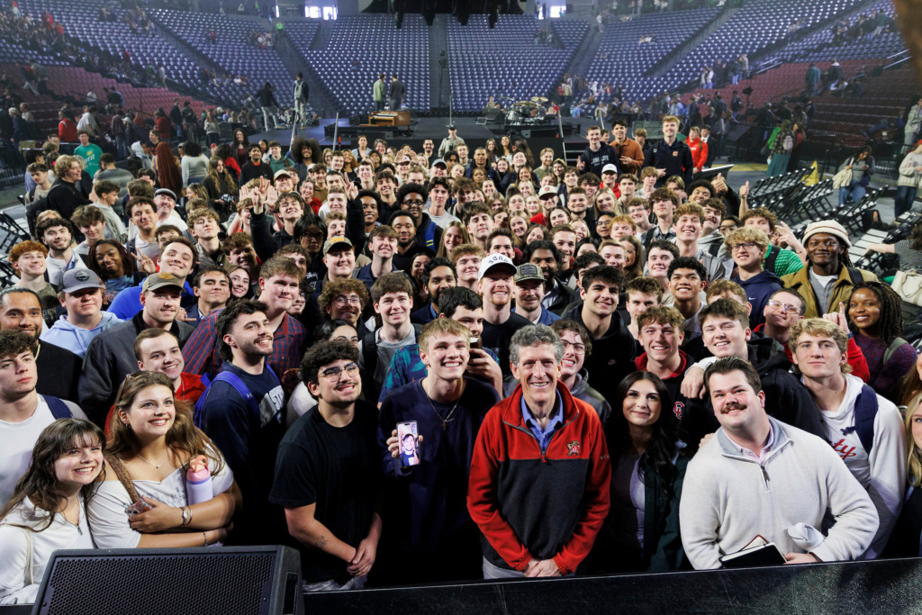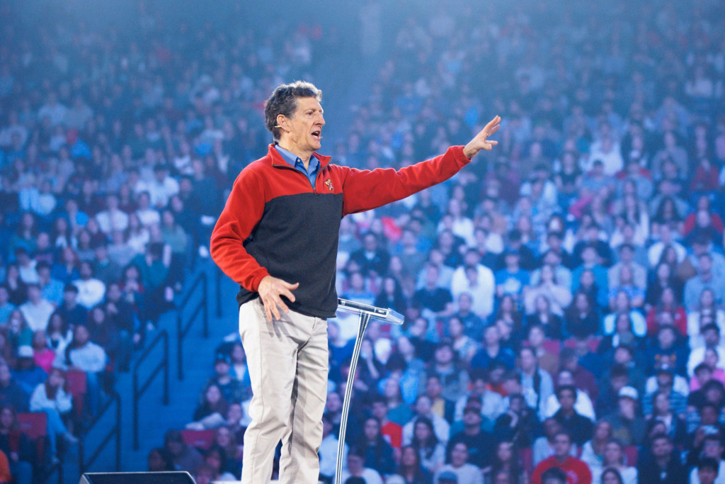 Knechtle’s Convocation visit coincided with the Collegiate Day of Prayer on Thursday evening in the Vines Center, where he joined pastor Jonathan Pokluda, street evangelist Bryce Crawford, and others in leading thousands of people across the globe in prayer for revival on college campuses. Pokluda and Crawford spoke in Convocation on Wednesday.