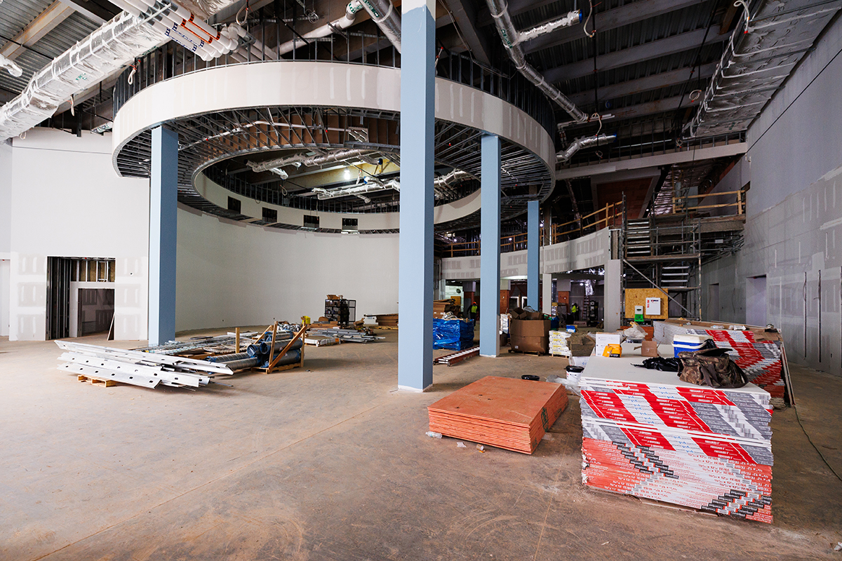 A major feature of the interior will be a 93-foot-long curve projection screen. (Photo by Matt Reynolds)