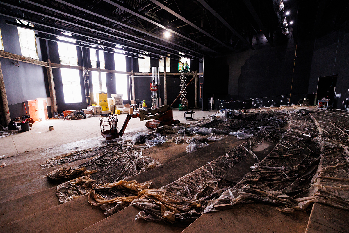 A 252-seat theater, outfitted with an LED video screen and environmental audio design, is being created by Liberty staff for visitors to view content about Liberty’s past, present, and future. (Photo by Matt Reynolds)