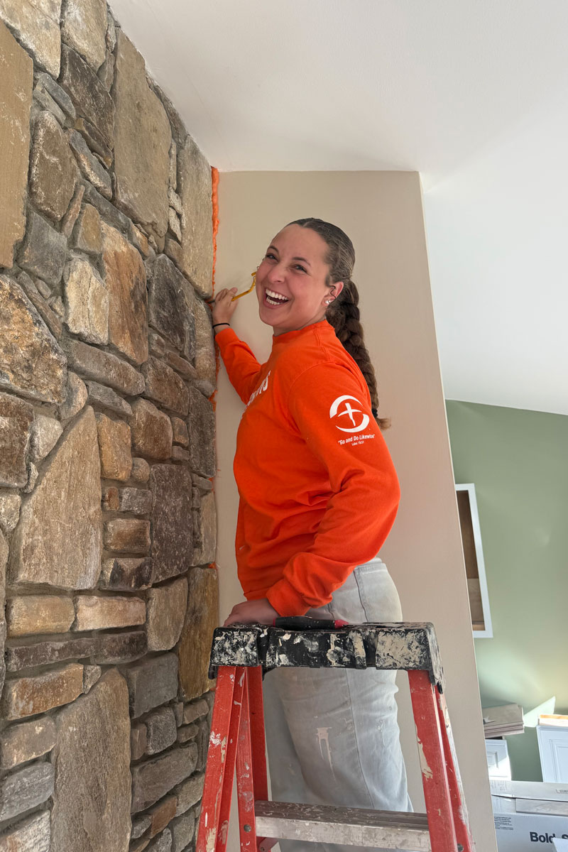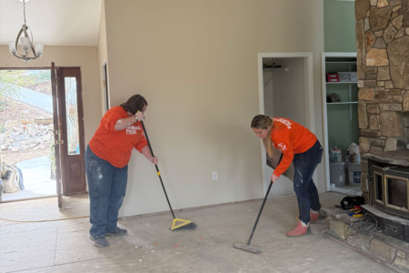During Spring Break, Liberty’s crew of nine students, two faculty, and one staff member split into two groups to complete home construction projects. They spent the week lifting barrels of concrete, installing flooring and doors, priming walls and ceilings, and more.