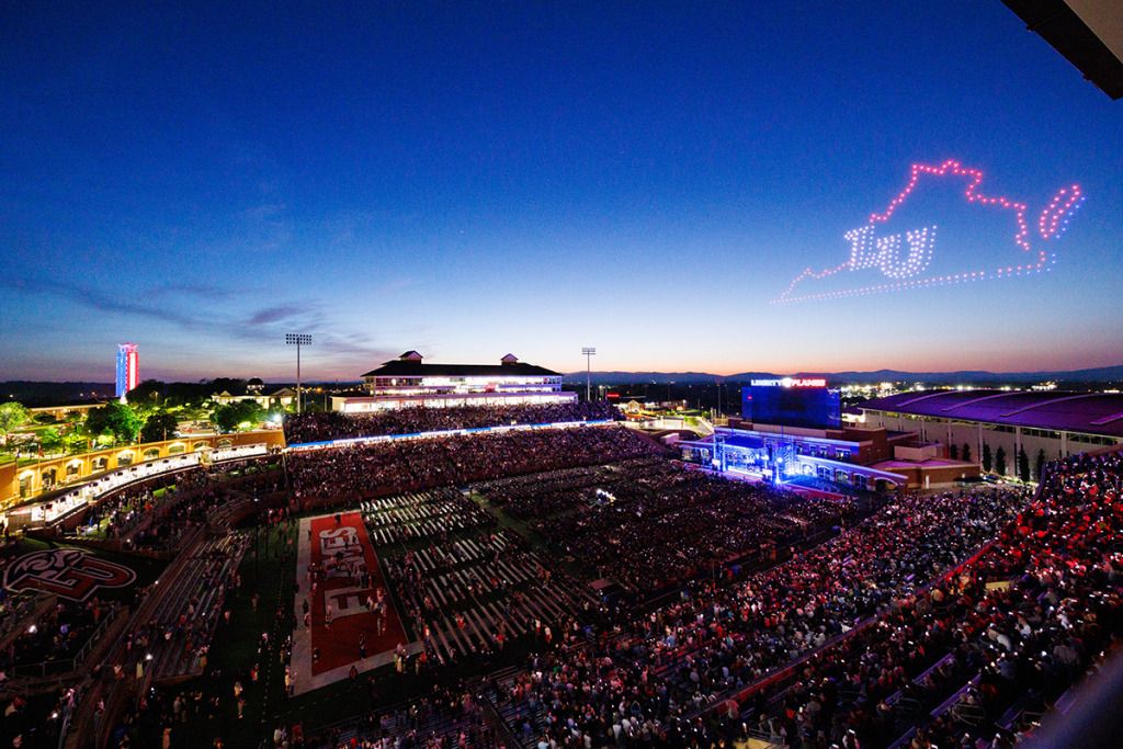 After the ceremony, a show including fireworks and 300 drones lit up the sky. Visit the full article for more highlights, and to watch a recorded video of Commencement.