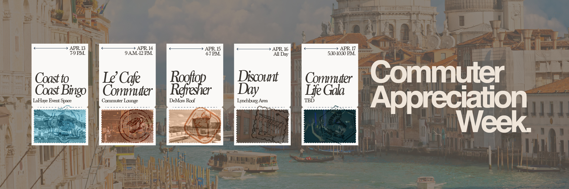 Commuter Appreciation Week is our way of celebrating YOU—Liberty’s hardworking, resilient, and community-driven commuter students! Whether you’re balancing classes, work, or off-campus life, we see you, appreciate you, and want to make this week one to remember. Each day will feature a unique event designed to bring fun, food, and connection to your commuter experience, leading up to our grand finale: Commuter Life Gala!