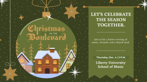 Celebrate the season with your fellow online students at a special in-person holiday event! Enjoy a festive dinner together on campus, followed by a beautiful performance of Christmas on the Boulevard: Classic presented by the Liberty University School of Music.